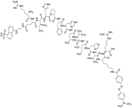 Grade:suitable for Hematology & HistologyPurity:≥ 85% (HPLC)Synonym:Arg-Glu(EDANS)-Ile-His-Pro-Phe-His-Leu-Val-Ile-His-Thr-Lys(DABCYL)-ArgCatalog Number:42045Grade:suitable for Hematology & HistologyPurity Limit:≥ 85% (HPLC)MDL NO:MFCD00284486Molecular Formula:C109H156N32O21SMolecular Weight:2282.7