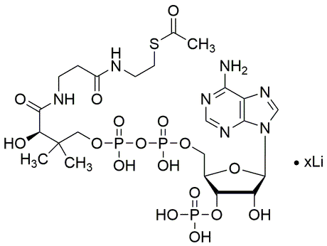 Catalog Number:42087CAS Number:32140-51-5Purity Limit:≥ 97% (HPLC)MDL NO:MFCD00167406Molecular Formula:C23H38N7O17P3S·xLi+Molecular Weight:809.57