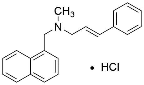 Purity:≥ 98% (Assay by titration)Synonym:N-trans-Cinnamyl-N-methyl-(1-naphthylmethyl)amine hydrochlorideCatalog Number:37700CAS Number:65473-14-5Purity Limit:≥ 98% (Assay by titration)MDL NO:MFCD00059047Molecular Formula:C21H21N·HClMolecular Weight:323.86