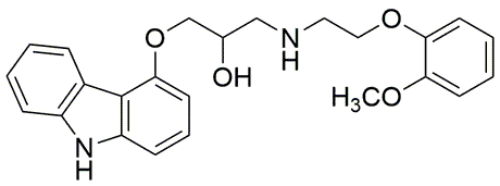 HazmatPurity:≥ 98% (Assay by titration, HPLC)Synonym:1-(9H-Carbazol-4-yloxy)-3-[[2-(2-methoxyphenoxy)ethyl]amino]-2-propanolHazmatCatalog Number:37711CAS Number:72956-09-3Purity Limit:≥ 98% (Assay by titration, HPLC)MDL NO:MFCD00864692Molecular Formula:C24H26N2O4Molecular Weight:406.48