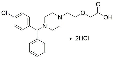 Purity:≥ 98% (Assay by titration, HPLC)Synonym:[2-[4-[(4-Chlorophenyl)phenylmethyl]-1-piperazinyl]ethoxy]acetic acid dihydrochlorideCatalog Number:37712CAS Number:83881-52-1Purity Limit:≥ 98% (Assay by titration, HPLC)MDL NO:MFCD00941428Molecular Formula:C21H25ClN2O3·2HClMolecular Weight:461.81