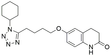 Purity:≥ 99% (Assay)Synonym:6-[4-(1-Cyclohexyl-1H-tetrazol-5-yl)butoxy]-3,4-dihydro-2(1H)-quinolinoneCatalog Number:37724CAS Number:73963-72-1Purity Limit:≥ 99% (Assay)MDL NO:MFCD00866780Molecular Formula:C20H27N5O2Molecular Weight:369.47
