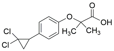 Purity:≥ 98% (Assay by titration, GC)Synonym:2-[4-(2,2-Dichlorocyclopropyl)phenoxy]-2-methylpropionic acidCatalog Number:37729CAS Number:52214-84-3Purity Limit:≥ 98% (Assay by titration, GC)MDL NO:MFCD00467135Molecular Formula:C13H14Cl2O3Molecular Weight:289.15