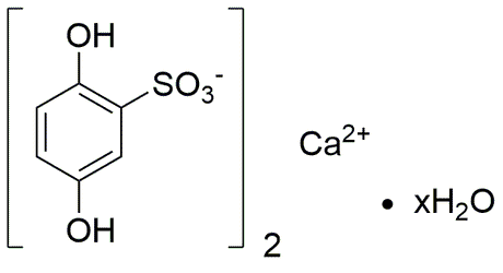 Purity:≥ 98% (HPLC)Synonym:Calcium 2,5-dihydroxybenzenesulfonate hydrateCatalog Number:37733CAS Number:117552-78-0Purity Limit:≥ 98% (HPLC)MDL NO:MFCD00867249Molecular Formula:C12H10CaO10S2·xH2OMolecular Weight:418.4