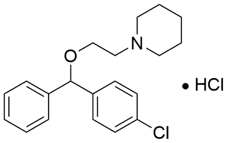Purity:≥ 97% (Assay by titration, HPLC)Synonym:1-[2-[(4-Chlorophenyl)(phenyl)methoxy]ethyl]piperidine hydrochlorideCatalog Number:37744CAS Number:14984-68-0Purity Limit:≥ 97% (Assay by titration, HPLC)MDL NO:MFCD00079012Molecular Formula:C20H24ClNO·HClMolecular Weight:366.33