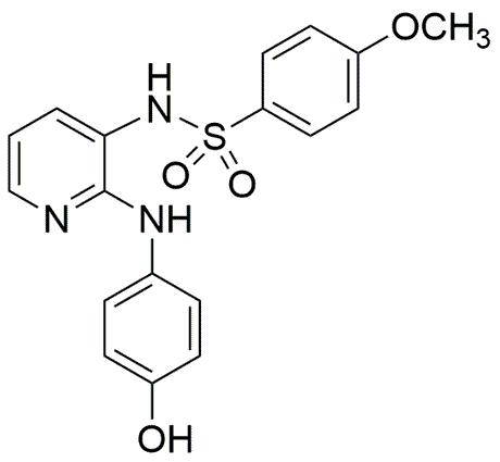 Purity:≥ 98% (HPLC)Synonym:N-[2-[(4-Hydroxyphenyl)amino]pyridin-3-yl]-4-methoxybenzenesulfonamideCatalog Number:37626CAS Number:141430-65-1Purity Limit:≥ 98% (HPLC)MDL NO:MFCD00910291Molecular Formula:C18H17N3O4SMolecular Weight:371.41