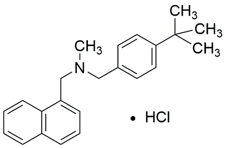 Purity:≥ 98% (Assay by titration, HPLC)Synonym:N-(p-tert-butylbenzyl)-N-methyl-1-naphthalenemethylamine hydrochlorideCatalog Number:37644CAS Number:101827-46-7Purity Limit:≥ 98% (Assay by titration, HPLC)MDL NO:MFCD00917064Molecular Formula:C23H27N·HClMolecular Weight:353.93