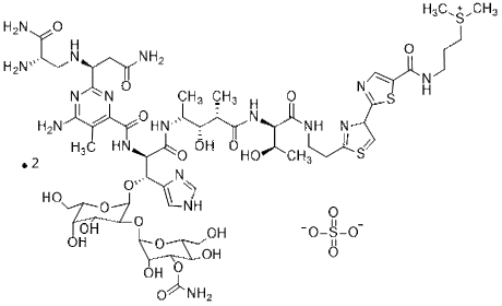 Grade:Meets USP specificationPurity:Assay : Bleomycin A2 : 55 - 70% Bleomycin B2 : 25 - 32% Bleomycin A2+ B2 : ≥ 90% Bleomycin B4 : ≤ 1%Synonym:BlenoxaneCatalog Number:22100Grade:Meets USP specificationCAS Number:9041-93-4Purity Limit:Assay : Bleomycin A2 : 55 - 70% Bleomycin B2 : 25 - 32% Bleomycin A2+ B2 : ≥ 90% Bleomycin B4 : ≤ 1%MDL NO:MFCD00070310Molecular Weight:0.0 -