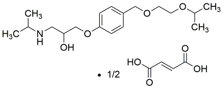 Purity:≥ 98% (Assay by titration, HPLC)Synonym:1-[4-[[2-(1-Methylethoxy)ethoxy]methyl]phenoxy]-3-[(1-methylethyl)amino]-2-propanol hemifumarateCatalog Number:37656CAS Number:104344-23-2Purity Limit:≥ 98% (Assay by titration, HPLC)MDL NO:MFCD00792743Molecular Formula:C18H31NO4·0.5C4H4O4Molecular Weight:383.49