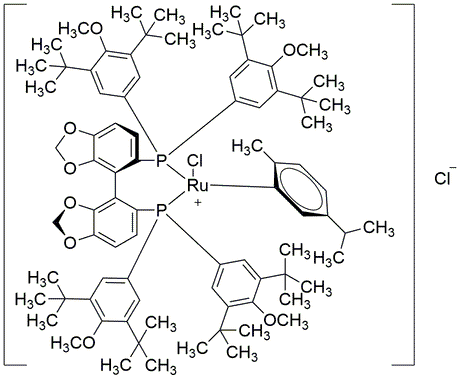 Synonym:Chloro[(R)-(-)-5,5'-bis[bis(3,5-di-tert-butyl-4-methoxyphenyl)phosphino]-4,4'-bi-1,3-benzodioxole](p-cymene)ruthenium(II) chlorideCatalog Number:40792CAS Number:944451-32-5MDL NO:MFCD09753019Molecular Formula:C84H114Cl2O8P2RuMolecular Weight:1485.75 -