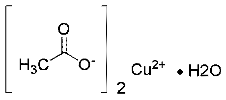 HazmatGrade:ACS reagentPurity:98 - 102% (Assay by titration)Synonym:Cupric acetate monohydrateHazmatCatalog Number:30095Grade:ACS reagentCAS Number:6046-93-1Purity Limit:98 - 102% (Assay by titration)MDL NO:MFCD00149570Molecular Formula:C4H6CuO4·H2OMolecular Weight:199.7 -