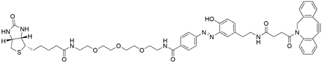 Purity:≥ 95% (HPLC)Synonym:1-(4,4-Dimethyl-2,6-dioxocyclohex-1-ylidene)-biotin dibenzocyclooctyneCatalog Number:35069Purity Limit:≥ 95% (HPLC)Molecular Formula:C32H50N4O8SMolecular Weight:872.08