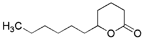 Grade:Natural, meets FG specifications, Kosher, FEMA 3Purity:98 - 100% (Assay, sum of isomers)Synonym:Undecanoic δ-lactoneCatalog Number:35008Grade:Natural, meets FG specifications, Kosher, FEMA 3CAS Number:710-04-3Purity Limit:98 - 100% (Assay, sum of isomers)MDL NO:MFCD00006650Molecular Formula:C11H20O2Molecular Weight:184.28
