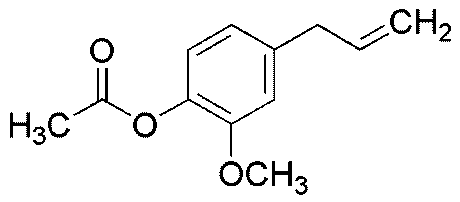 Grade:Natural, meets FG specifications, Kosher, FEMA 2Purity:99 - 100% (GC)Synonym:4-Allyl-2-methoxyphenyl acetateCatalog Number:34216Grade:Natural, meets FG specifications, Kosher, FEMA 2CAS Number:93-28-7Purity Limit:99 - 100% (GC)MDL NO:MFCD00026191Molecular Formula:C12H14O3Molecular Weight:206.24