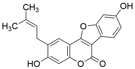 Purity:≥ 99% (HPLC)Synonym:3,9-Dihydroxy-2-(3-methylbut-2-en-1-yl)-6H-benzofuro[3,2-c]chromen-6-oneCatalog Number:42430CAS Number:18642-23-4Purity Limit:≥ 99% (HPLC)MDL NO:MFCD10566617Molecular Formula:C20H16O5Molecular Weight:336.34