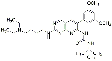 Purity:≥ 95% (HPLC)Synonym:1-(tert-Butyl)-3-[7-[[4-(diethylamino)butyl]amino]-3-(3,5-dimethoxyphenyl)pyrido[2,3-d]pyrimidin-2-yl]ureaCatalog Number:38196CAS Number:219580-11-7Purity Limit:≥ 95% (HPLC)MDL NO:MFCD08705327Molecular Formula:C28H41N7O3Molecular Weight:523.68