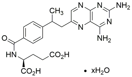 HazmatGrade:suitable for cell culturePurity:≥ 98% (HPLC)Synonym:4-Amino-10-methylfolic acid hydrateHazmatCatalog Number:38826Grade:suitable for cell cultureCAS Number:133073-73-1Purity Limit:≥ 98% (HPLC)MDL NO:MFCD00150847Molecular Formula:C20H22N8O5·xH2OMolecular Weight:454.44