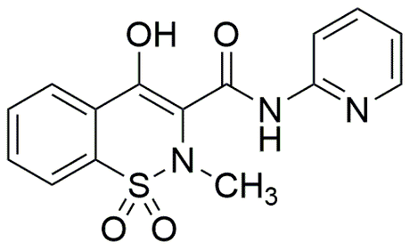 HazmatGrade:meets USP specificationPurity:97 - 103% (Assay)Synonym:4-Hydroxy-2-methyl-N-(2-pyridyl)-2H-1,2-benzothiazine-3-carboxamide 1,1-DioxideHazmatCatalog Number:38162Grade:meets USP specificationCAS Number:36322-90-4Purity Limit:97 - 103% (Assay)MDL NO:MFCD00057317Molecular Formula:C15H13N3O4SMolecular Weight:331.35