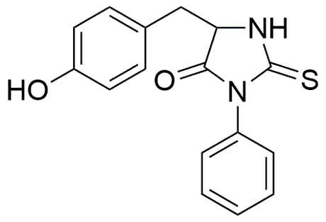 Purity:≥ 98% (HPLC)Synonym:5-(4-Hydroxybenzyl)-3-phenyl-2-thiohydantoinCatalog Number:41755CAS Number:4332-95-0Purity Limit:≥ 98% (HPLC)MDL NO:MFCD00027415Molecular Formula:C16H14N2O2SMolecular Weight:298.36