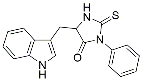 Purity:≥ 98% (HPLC)Synonym:5-(3-Indolylmethyl)-3-phenyl-2-thiohydantoinCatalog Number:41760CAS Number:5789-24-2Purity Limit:≥ 98% (HPLC)MDL NO:MFCD06858416Molecular Formula:C18H15N3OSMolecular Weight:321.4 -