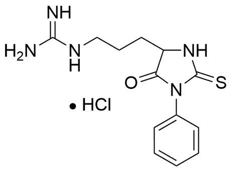 Purity:≥ 98% (HPLC)Synonym:5-(3-Guanidinopropyl)-3-phenyl-2-thiohydantoin hydrochlorideCatalog Number:41763CAS Number:182153-75-9Purity Limit:≥ 98% (HPLC)MDL NO:MFCD00060177Molecular Formula:C13H17N5OS·HClMolecular Weight:327.83 -