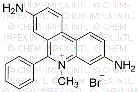 Purity:≥ 99% (HPLC)Synonym:3,8-Diamino-5-methyl-6-phenylphenanthridinium bromideCatalog Number:42145CAS Number:518-67-2Purity Limit:≥ 99% (HPLC)MDL NO:MFCD00011757Molecular Formula:C20H18BrN3Molecular Weight:380.28