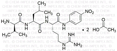 Synonym:DVal-Leu-Arg-pNACatalog Number:32925CAS Number:64816-14-4MDL NO:MFCD09250882Molecular Formula:C23H38N8O5·2C2H4O2Molecular Weight:626.71
