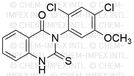 Purity:≥ 98% (HPLC)Synonym:3-(2,4-Dichloro-5-methoxyphenyl)-2-thioxo-2,3-dihydro-4(1H-quinazolinoneCatalog Number:42201CAS Number:338967-87-6Purity Limit:≥ 98% (HPLC)MDL NO:MFCD00974506Molecular Formula:C15H10Cl2N2O2SMolecular Weight:353.22