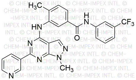 HazmatPurity:≥ 98 % (HPLC)Synonym:4-méthyl-3-[[1-méthyl-6-(3-pyridinyl)-1 H -pyrazolo[3,4-d]pyrimidin-4-yl]amino]- N -[3-(trifluorométhyl)phényl]benzamideHazmatCatalog Number:42182CAS Number:940310-85-0Purity Limit:≥ 98 % (HPLC)MDL NO:MFCD20272929Molecular Formula:C 26 H 20 F 3 N 7 OMolecular Weight:503.49