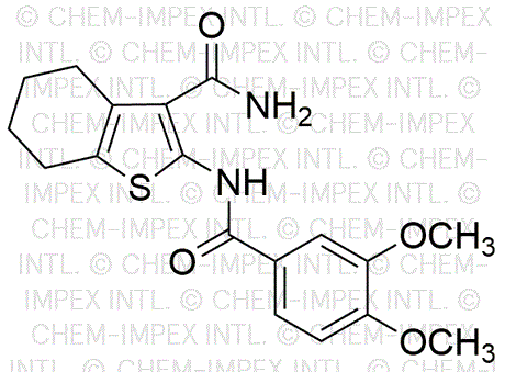 Purity:≥ 98 % (HPLC)Synonym:2-(3,4-diméthoxybenzamido)-4,5,6,7-tétrahydrobenzo[ b ]thiophène-3-carboxamideCatalog Number:42189CAS Number:301305-73-7Purity Limit:≥ 98 % (HPLC)MDL NO:MFCD00617269Molecular Formula:C18H20N2O4SMolecular Weight:360.43