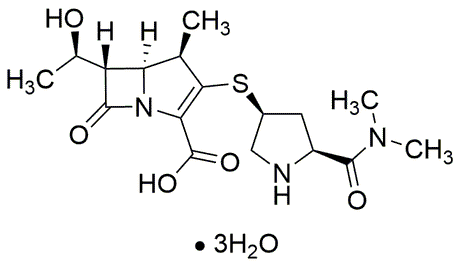 Purity:98 - 101 % (dosage : base anhydre)Synonym:Acide (1R,5S,6S)-2-[(3S,5S)-5-(diméthylaminocarbonyl)pyrrolidin-3-ylthio]-6-[( R )-1-hydroxyéthyl]-1-méthylcarbapen-2-em-3-carboxylique trihydratéCatalog Number:38379CAS Number:119478-56-7Purity Limit:98 - 101 % (dosage : base anhydre)MDL NO:MFCD08600005Molecular Formula:C17H25N3O5S · 3H2OMolecular Weight:437.51