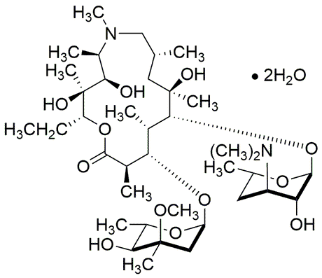 Grade:Conforme aux spécifications USPPurity:945 - 1030 ìg/mg (Assay on anhydrous basis)Synonym:N -méthyl-11-aza-10-déoxo-10-dihydroérythromycine ACatalog Number:38400Grade:Conforme aux spécifications USPCAS Number:117772-70-0Purity Limit:945 - 1030 ìg/mg (Assay on anhydrous basis)MDL NO:MFCD01862248Molecular Formula:C38H72N2O12 · 2H2OMolecular Weight:785.03