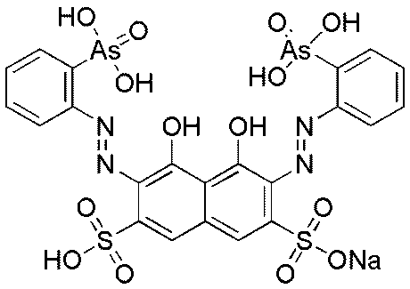 HazmatCatalog Number:00796Grade:Haute qualitéCAS Number:1668-00-4Purity Limit:≥ 94 % (HPLC)MDL NO:MFCD00036695Molecular Formula:C22H18As2N4O14S2Molecular Weight:776.37