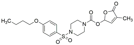 Purity:≥ 98 % (HPLC)Synonym:4-méthyl-5-oxo-2,5-dihydrofuran-2-yl4-[(4-butoxyphényl)sulfonyl]pipérazine-1-carboxylateCatalog Number:39311CAS Number:2305752-57-0Purity Limit:≥ 98 % (HPLC)MDL NO:MFCD32641453Molecular Formula:C20H26N2O7SMolecular Weight:438.5