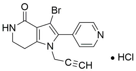 Purity:≥ 97 % (HPLC)Synonym:3-Bromo-1-(pro p -2-yn-1-yl)-2-(pyridin-4-yl)-1,5,6,7-tétrahydro-4 H -pyrrolo[3,2-c]pyridin-4-onechlorhydrateCatalog Number:39315Purity Limit:≥ 97 % (HPLC)Molecular Formula:C15H12BrN3O · HClMolecular Weight:366.64