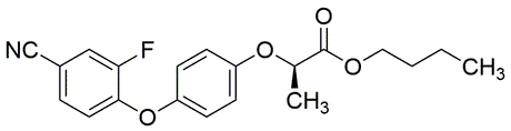 HazmatPurity:≥ 97% (CG)Synonym:Butyl( R )-2-[4-(4-cyano-2-fluorophénoxy)phénoxy]propionateHazmatCatalog Number:39334CAS Number:122008-85-9Purity Limit:≥ 97% (CG)MDL NO:MFCD01631151Molecular Formula:C 20 H 20 FNO 4Molecular Weight:357.38