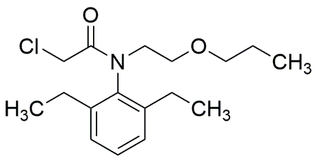 HazmatPurity:≥ 97% (CG)Synonym:2-Chloro-2',6'-diéthyl- N -(2-propoxyéthyl)acétanilideHazmatCatalog Number:39337CAS Number:51218-49-6Purity Limit:≥ 97% (CG)MDL NO:MFCD00161476Molecular Formula:C 17 H 26 ClNO 2Molecular Weight:311.85