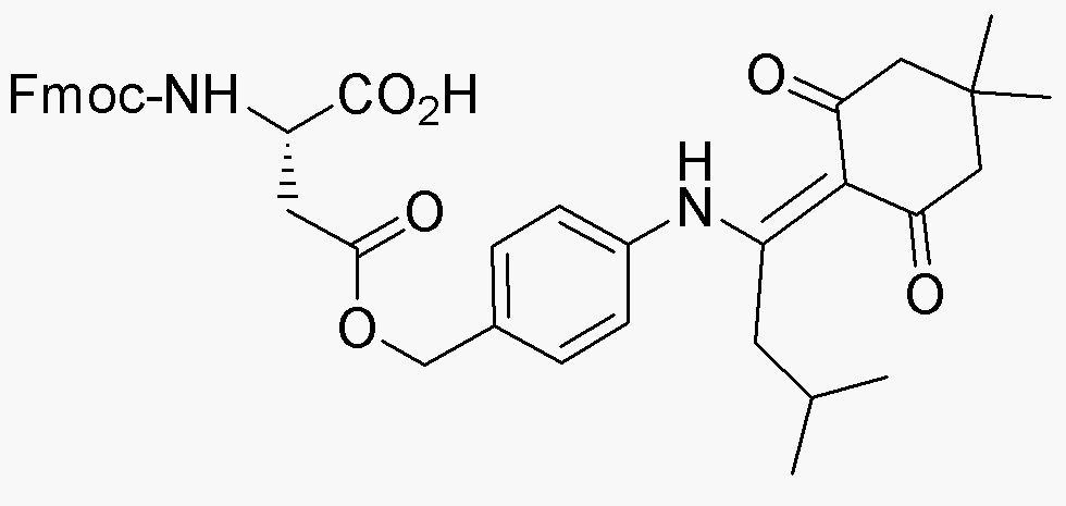 Fmoc-L-aspartic acid b-4-[N-{1-(4,4-dimethyl-2,6-dioxocyclohexylidene)-3-methylbutyl}amino]benzyl es is widely utilized in research focused on: