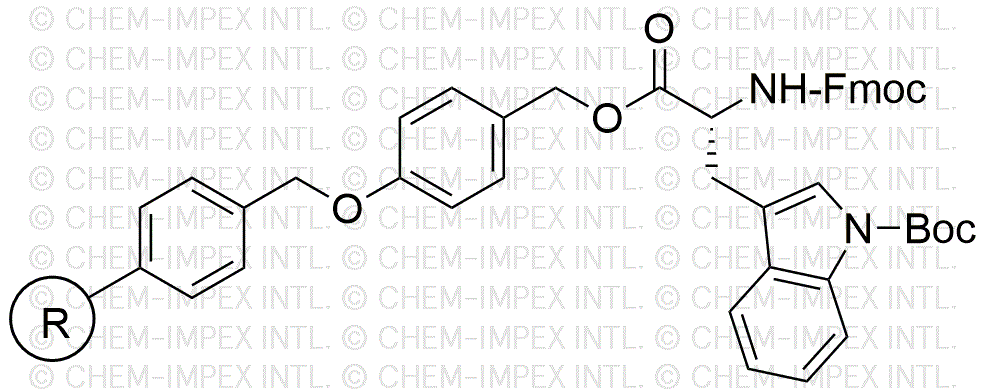 Na-Fmoc-Nin-Boc-D-tryptophan 4-alkoxybenzyl alcohol resin is a specialized chemical compound widely utilized in peptide synthesis and drug development. This resin serves as a solid support for the synthesis of peptides, particularly those containing the essential amino acid tryptophan, which is crucial for various biological functions. The Fmoc (9-fluorenylmethoxycarbonyl) and Boc (tert-butyloxycarbonyl) protecting groups provide stability during the synthesis process, allowing for selective deprotection and facilitating the assembly of complex peptide sequences. Researchers appreciate its compatibility with automated synthesizers, making it an efficient choice for high-throughput applications.