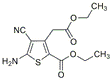 Ethyl 5-amino-4-cyano-3-(2-ethoxycarbonylmethyl)thiophene-2-carboxylate is widely utilized in research focused on:
